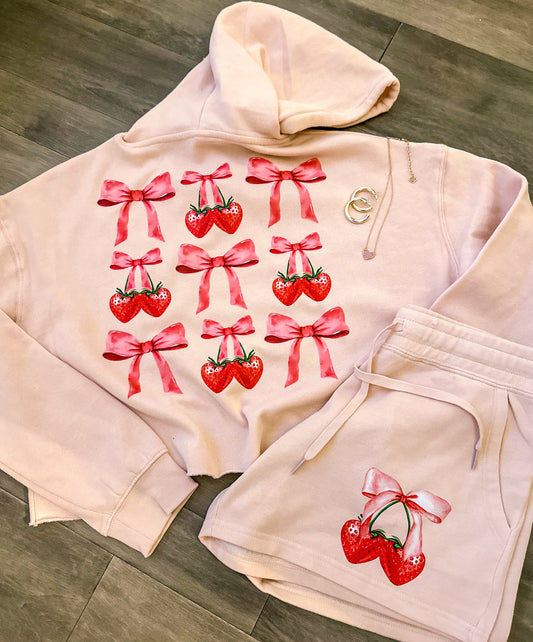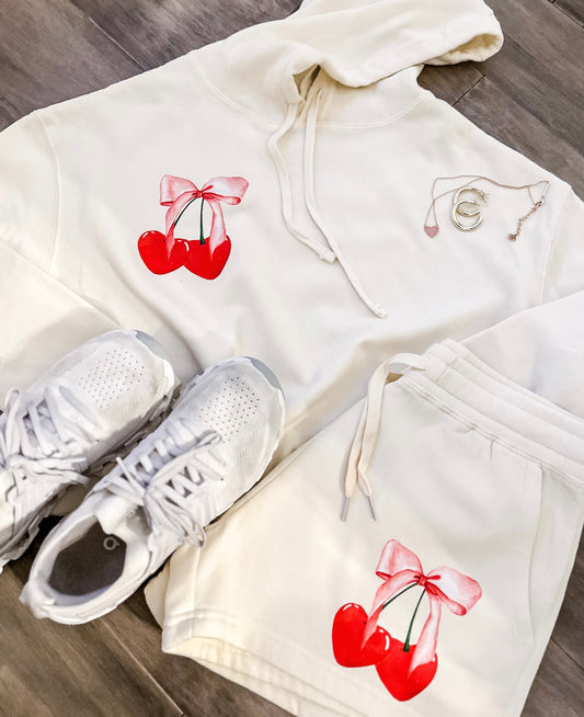 Girly Girl Cropped Hoodie Lounge Set in I Love You Cherry Much