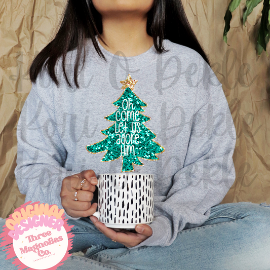Oh come let us adore Him faux Glitter Christmas tree png for digital download only