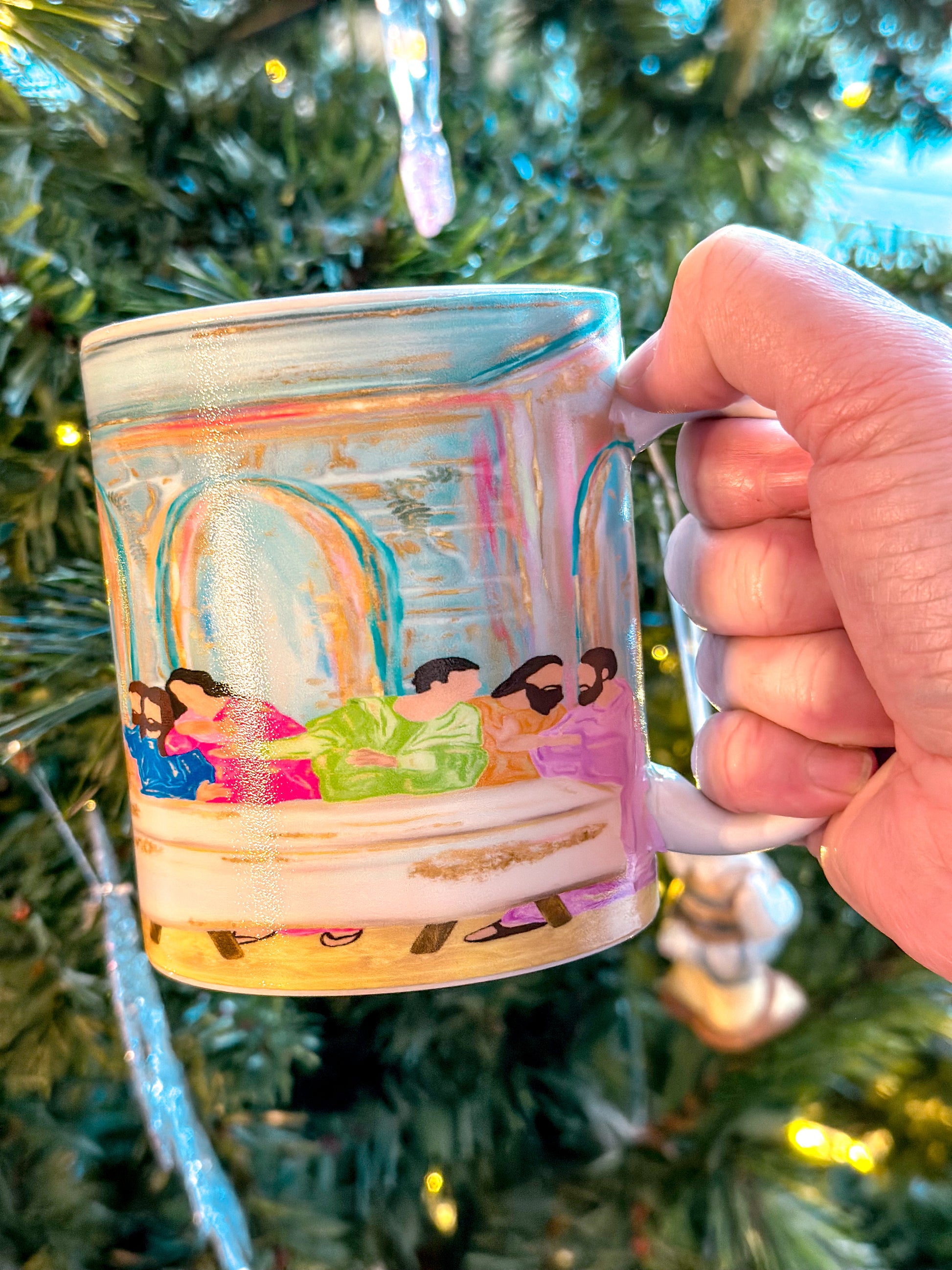 Enjoy your morning coffee routine with our beautiful ‘A Seat at the Table’ coffee mug. This gorgeous mug features a hand-painted depiction of the Last Supper in bright, cheerful colors. Available in both 12 and 15 oz sizes, start your day on a joyful note with this beautiful reminder of the love of Jesus.