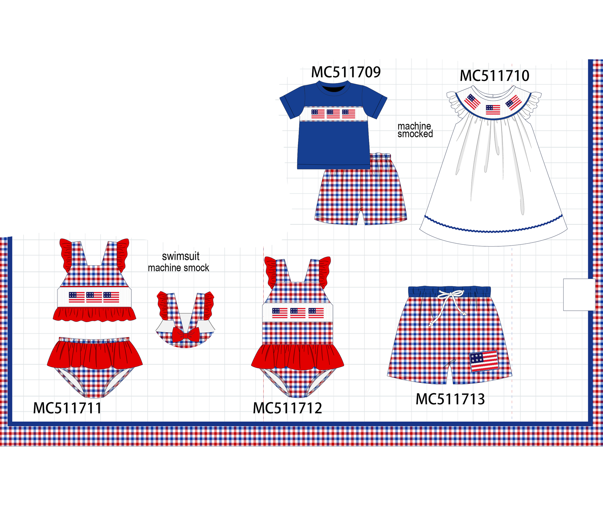 PO75 Patriotic flag smocked gingham collection 2